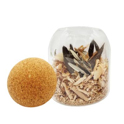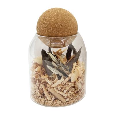 Materiali:Vetro, tappo in sughero, trucioli di legno e foglie di ulivo essiccate